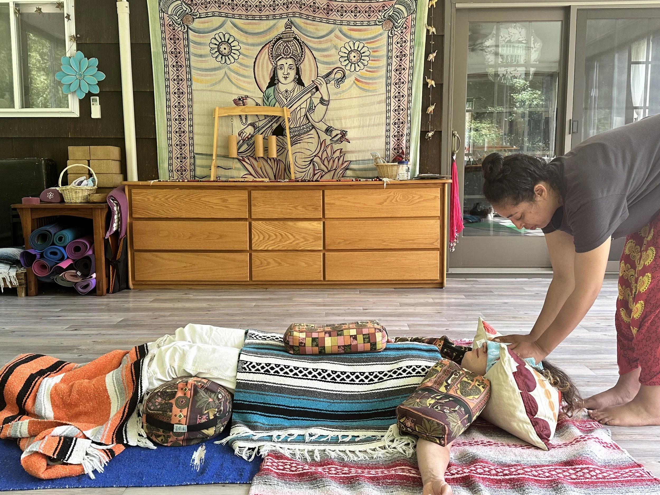 Private sessions meet specific needs, including detailed posture guidance, guided meditation, personalized sound healing with Reiki, adjustments, injury recovery, and prenatal or postnatal yoga.